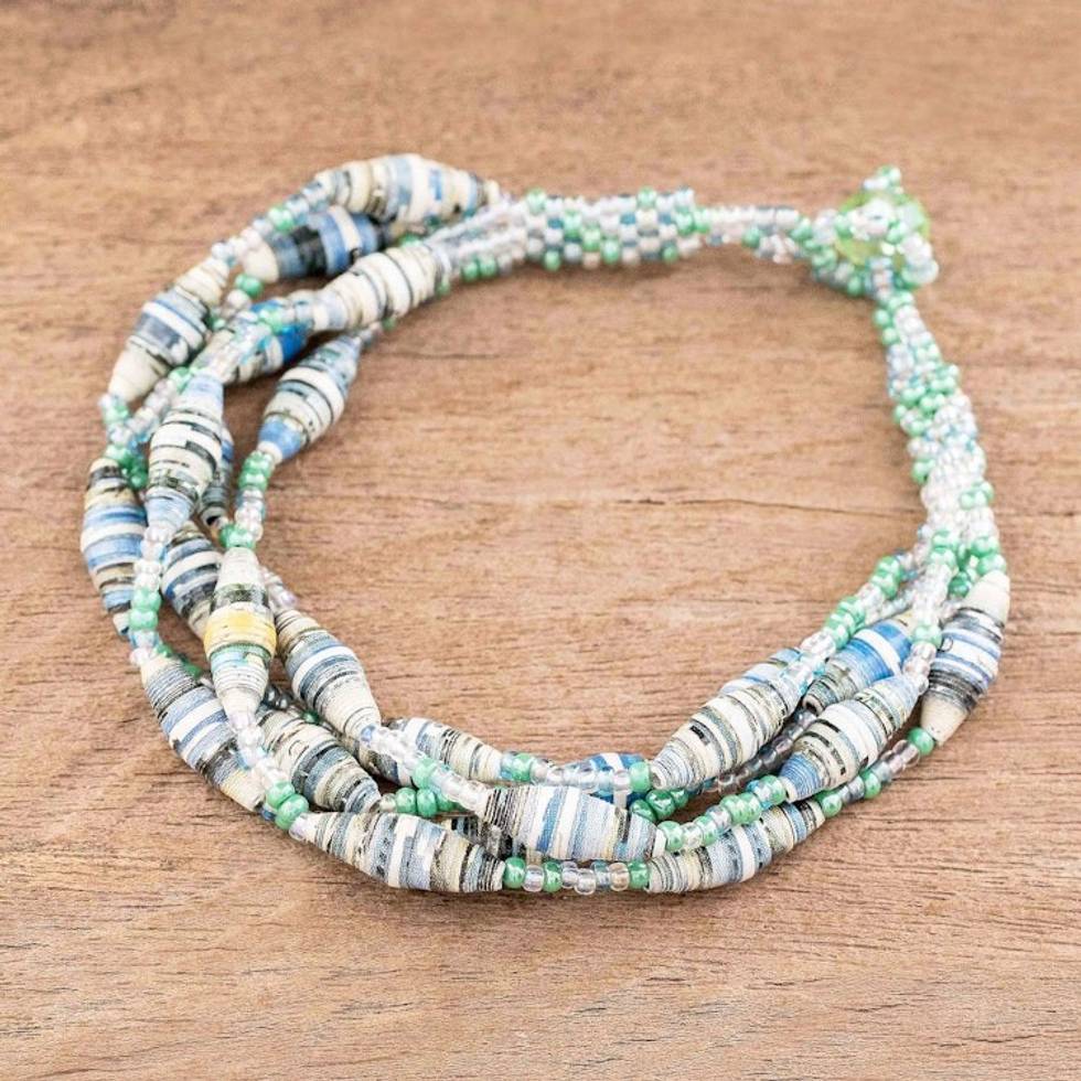 Beaded Bracelet with Recycled Paper 'Bonds of Friendship in Mint' Item ID: 2669923699