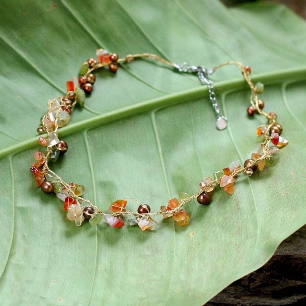 Beaded Carnelian and Pearl Necklace 'Tropical Elite' Item ID: 2669928430