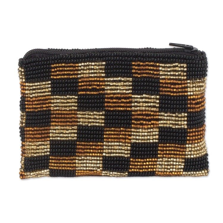 Beaded Checkered Coin Purse Handcrafted in Guatemala 'Charming Rectangles' Item ID: 2671770374