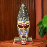 "With wide eyes and a serious expression, this personage wears a pointed headdress with polished brass insets. Sefah Mohammed carves and paints the mask by hand, embellishing it with colorful glass beads. His own design, it is named Ahene Kye, which means 'royal hat' in the Twi language of Ghana's Akan people."