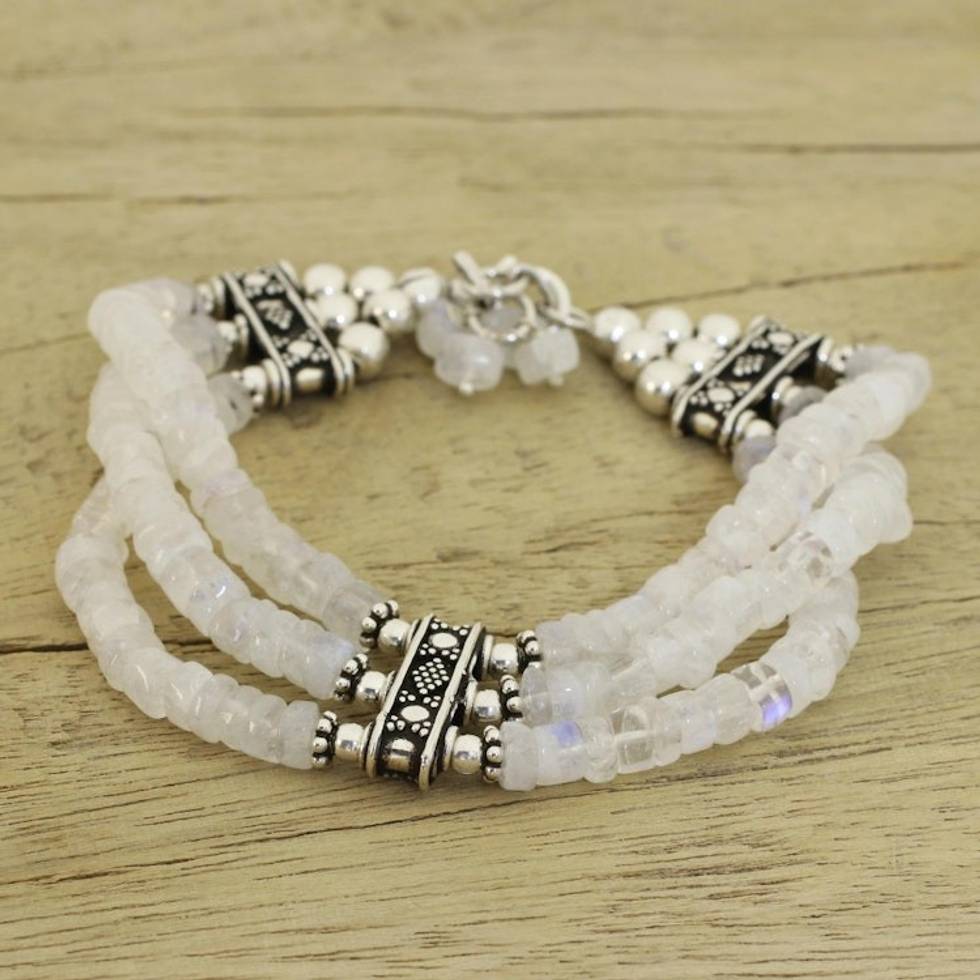Beaded Jewelry Rainbow Moonstone Bracelet Sterling Silver 'Pure Love' Item ID: 2669924061