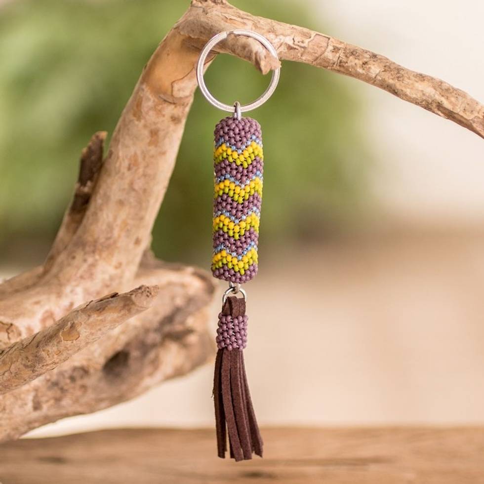 Beaded Leather Keychain and Bag Charm Handmade in Guatemala 'Absolute Harmony' Item ID: 2671772201
