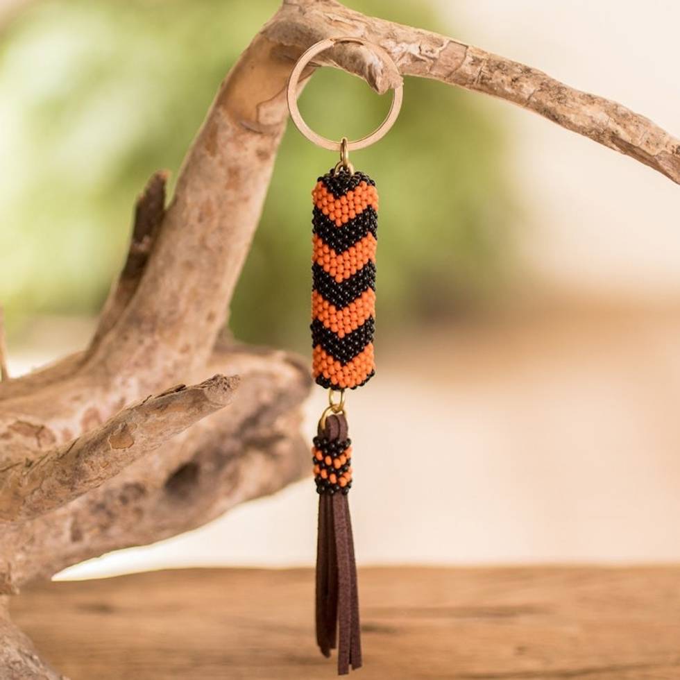 Beaded Leather Keychain and Bag Charm Handmade in Guatemala 'Energizing Sunset' Item ID: 2671771720