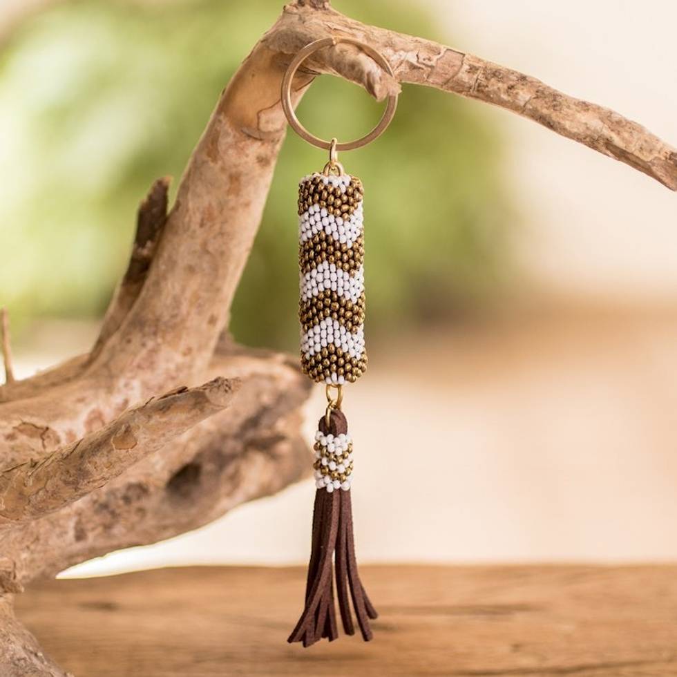 Beaded Leather Keychain and Bag Charm Handmade in Guatemala 'Lovely Radiance' Item ID: 2671626961