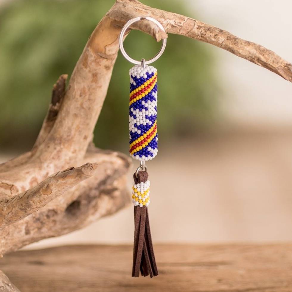 Beaded Leather Keychain and Bag Charm Handmade in Guatemala 'Total Relaxation' Item ID: 2671626425