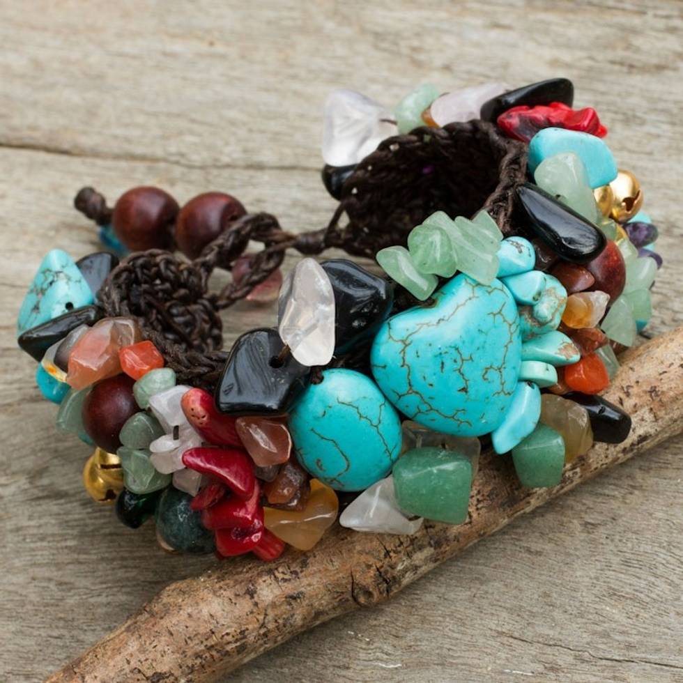 I absolutely love Tiraphan Hasub's bracelets. I have several in my collection, and I just ordered another with the Rose Quartz. These are the perfect gift for a friend that loves nature or bohemian style. The little bells on the clasp make a wonderful tinkling sound when worn.