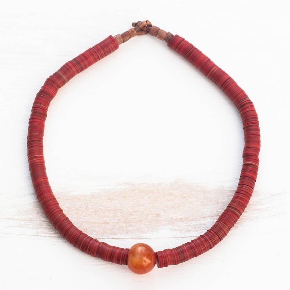 "I have a real passion for what I do and I work mostly with natural stones made into beads. I travel quite a distance to the eastern region of Ghana to get natural bauxite and soapstone. I am in contact with stone carvers there who shape and cut them to my specifications.