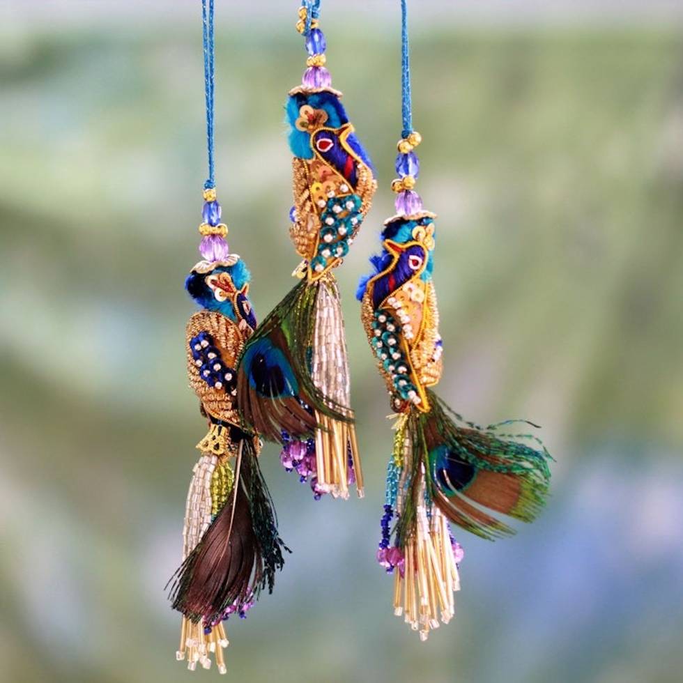 Beaded ornaments Set of 3 'Royal Peacock' Item ID: 2669924939