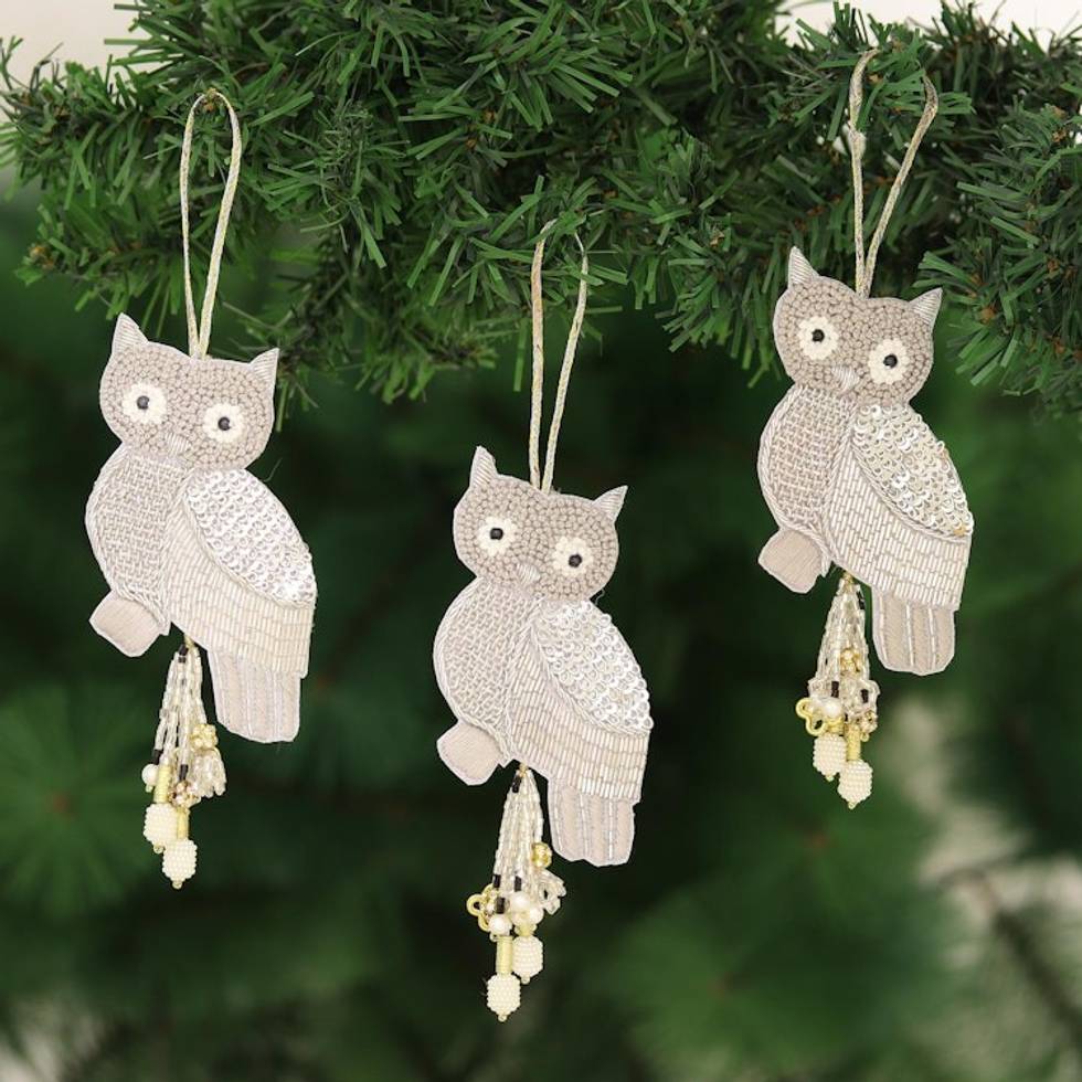 Beaded Owl Christmas Ornaments Set of 3 'Owl Glitz' Item ID: 2669892378