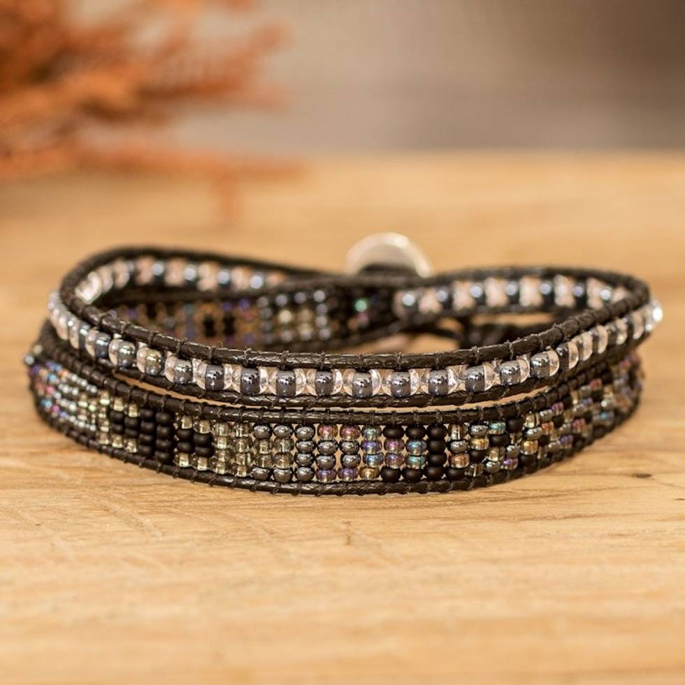 Beaded Positive Energy Long Wrap Bracelet in Black Grey 'Trendy Makeover' Item ID: 2671627125