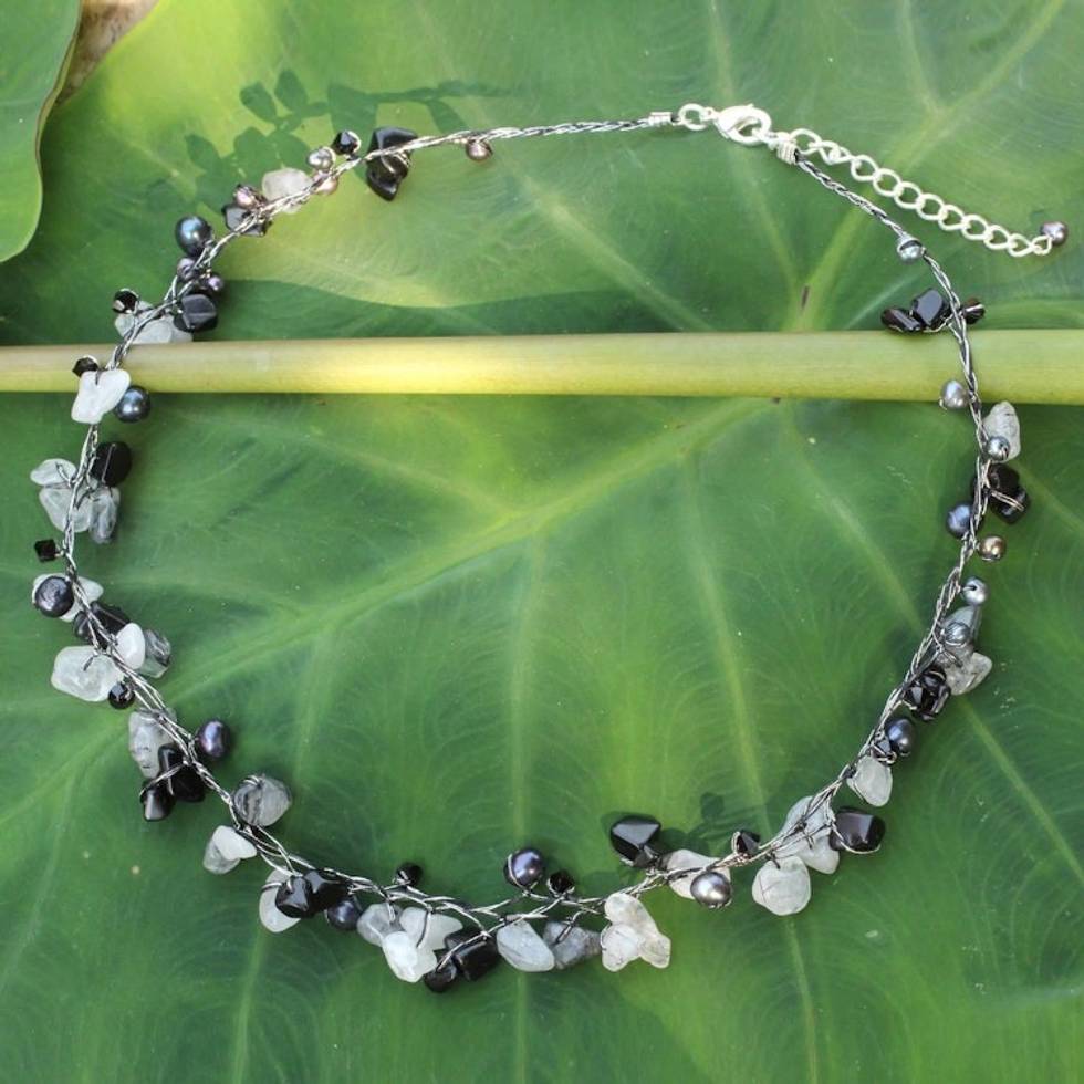 Beaded Quartz and Pearl Necklace from Thailand 'River of Night' Item ID: 2669926016