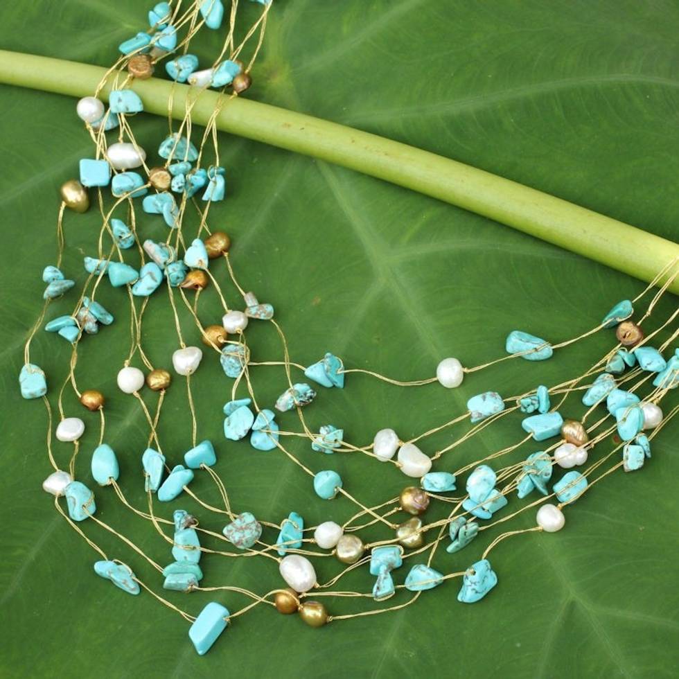 Beaded Turquoise Colored Necklace 'Cool Shower' Item ID: 2669930906