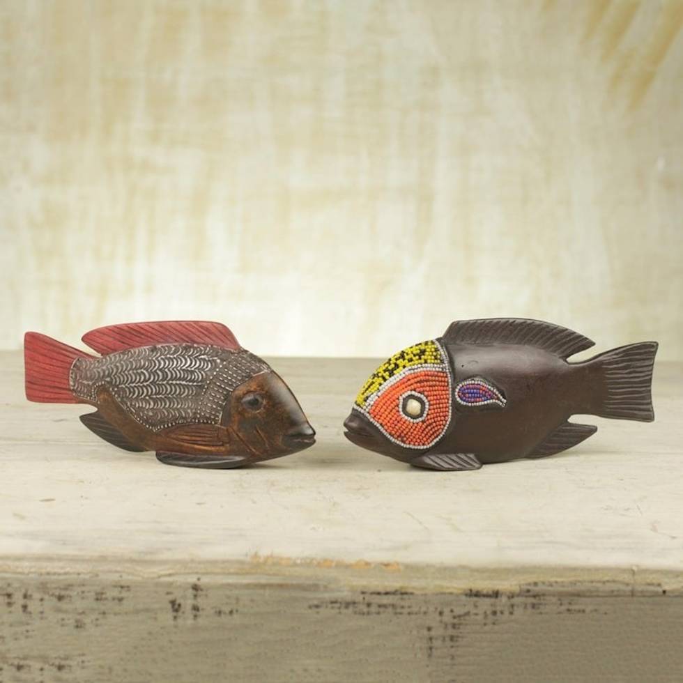 Beaded Wood Sculptures Pair 'African Tilapia Fish' Item ID: 2671807250