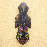 Beaded Wood Three Faced African Wall Mask Crafted by Hand 'Glorious Work' Item ID: 2671803907