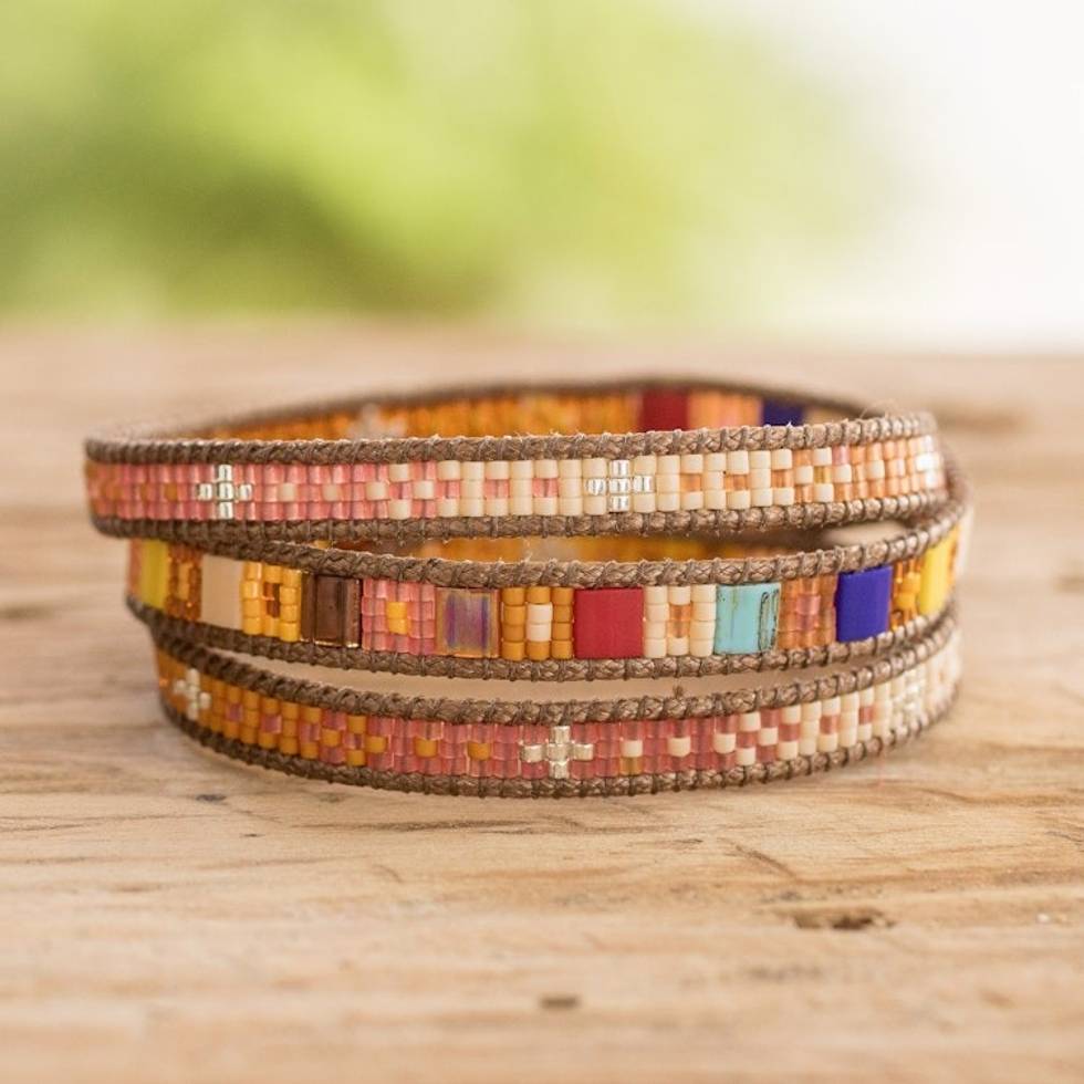 Beaded Wrap Bracelet Multicolor Multi Cord from Guatemala 'Colorful Dance' Item ID: 2669933736