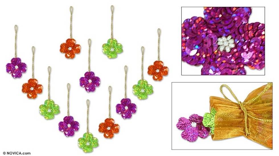 Beadwork ornaments Set of 12 'Sparkling Petals' Item ID: 2671794062