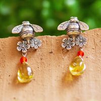 Bee-Themed Amber Dangle Earrings from Mexico 'Golden Bees' Item ID: 2671808528