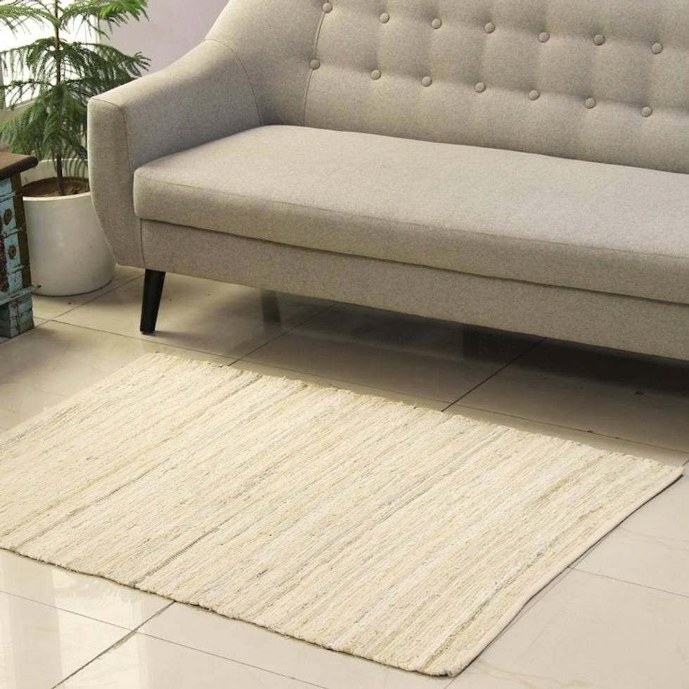 Beige and Azure Recycled Cotton Area Rug from India 3x4.5 'Subdued Style' Item ID: 2671789363