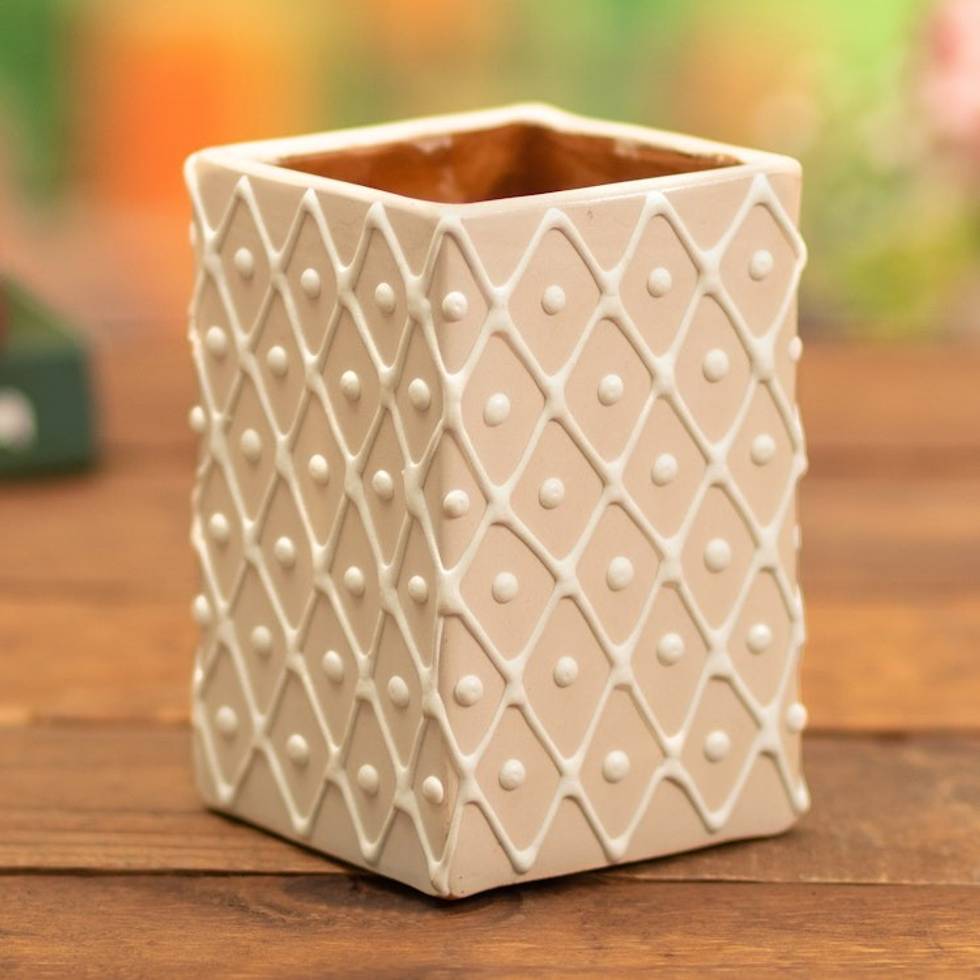 Beige and White Ceramic Flower Pot with Diamond Pattern 'Oneiric Vibes' Item ID: 2669904823
