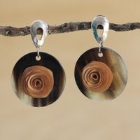 Beige Floral Gold Accented Wood and Horn Dangle Earrings 'Toffee Rose' Item ID: 2669935355