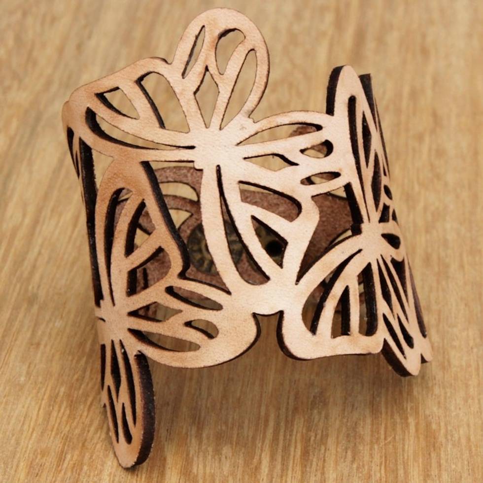 Beige Leather Butterfly Wristband Bracelet Crafted in Brazil 'Beige Brazilian Butterfly' Item ID: 2669935076
