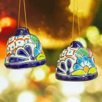 Bell-Shaped Talavera-Style Ceramic Ornaments Pair 'Talavera Bells' Item ID: 2669897663