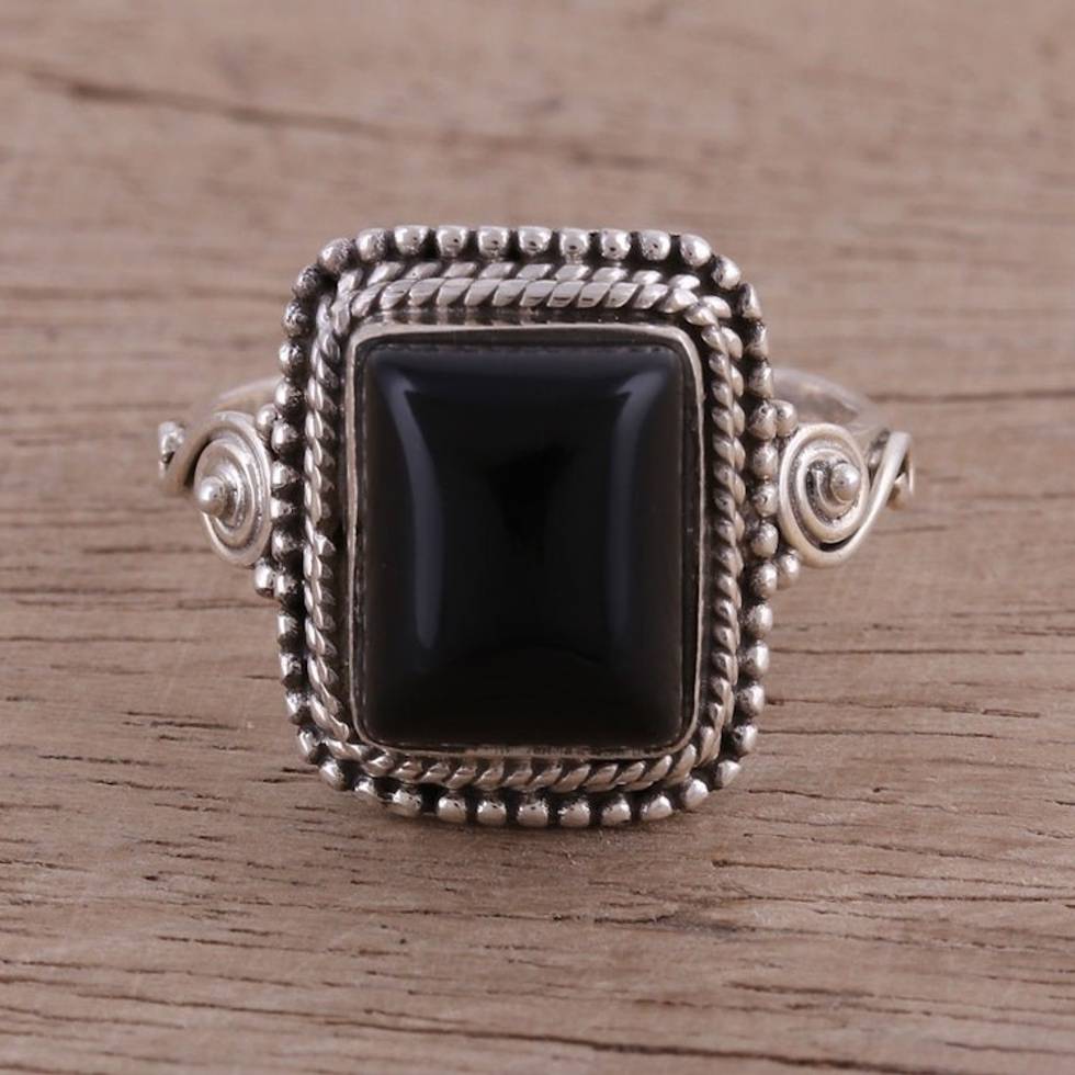 Bezel Set Onyx and Sterling Silver Cocktail Ring 'Block Party' Item ID: 2669943810