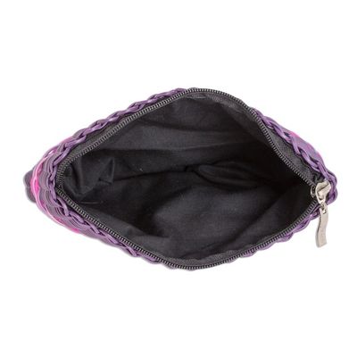 Bicolor Recycled Central American Handwoven Cosmetic Bag 'White on Black' Item ID: 2671772329