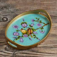 Bird and Flower Motif Reverse-Painted Glass Tray 'Birds of a Feather in Blue' Item ID: 2671690108