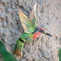 The Little Emerald Hummingbird is simply fabulous! The iridescent gleam is stunning with the authentic colors. The hummingbird is hung on the same wood fence as the "Gleaming Eclipse" purchased earlier this year. They awaken a neglected corner of our patio. We also have the "Monarch Butterfly Tree" in a corner of the patio. The Tree is an extraordinary work of art. Each J. Blas artwork has made ours a most glorious patio to enjoy.