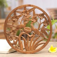 Bird Floral and Leaf Relief Panel Hand-Carved from Wood 'Morning Frangipani' Item ID: 2671763340