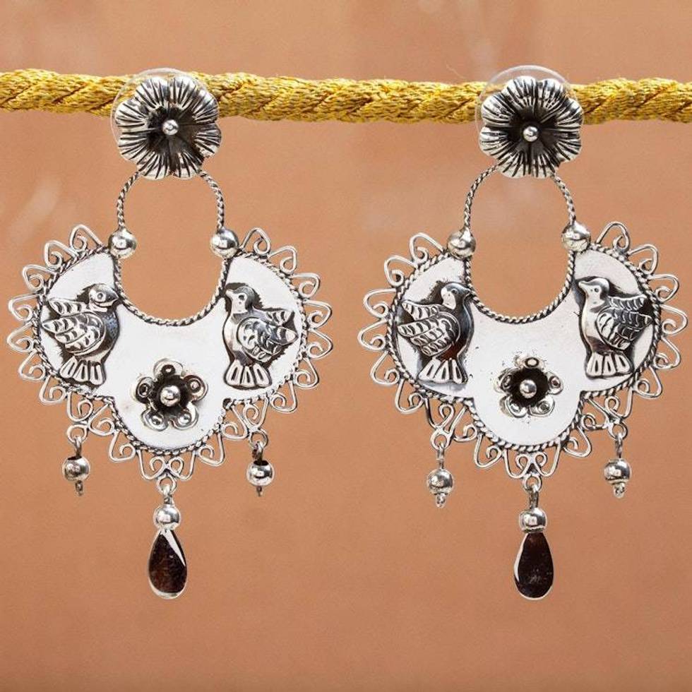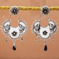 Bird Pattern Taxco Sterling Silver Dangle Earrings 'Eden Birds' Item ID: 2676646667