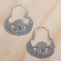 Bird-Themed Sterling Silver Hoop Earrings from Mexico 'Gracious Birds' Item ID: 2671808424