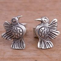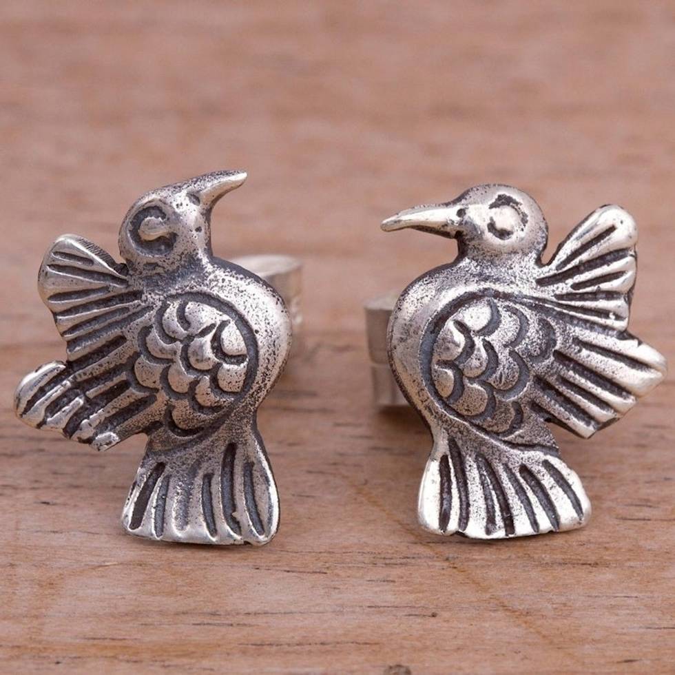 Bird-Themed Sterling Silver Stud Earrings from Peru 'Melody of Nature' Item ID: 2671400062