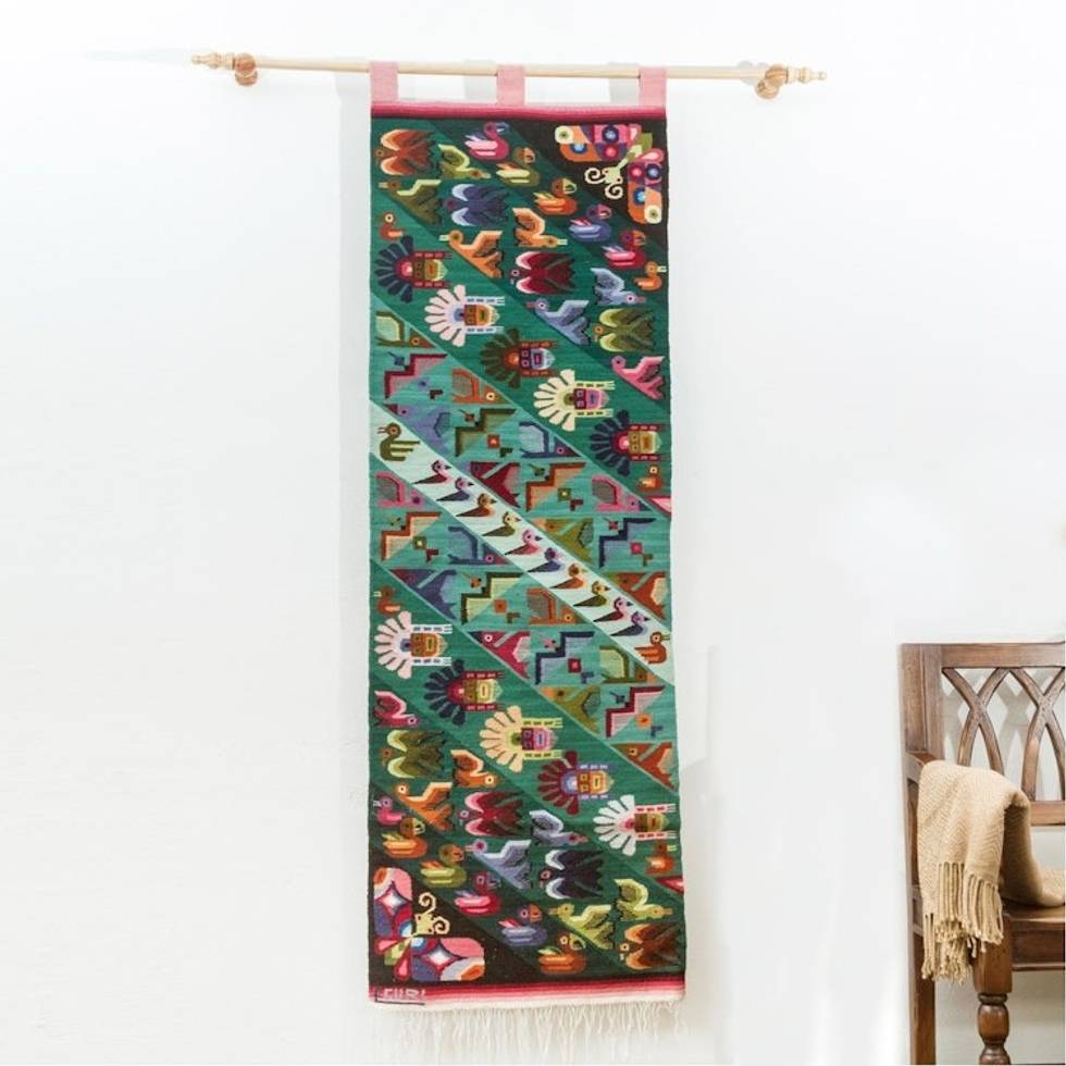 Birds and Butterflies on Multicolor Handloomed Wool Tapestry 'Flight' Item ID: 2671402250