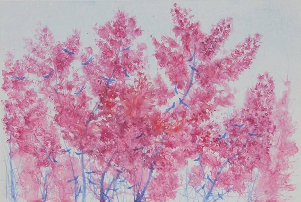 Birds on Cherry Blossoms Watercolor Monoprint from Thailand 'My Home IV' Item ID: 2669889588