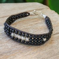 Black Agate Beaded Wristband Bracelet with Silver Accents 'Sparkling Balance' Item ID: 2671797743