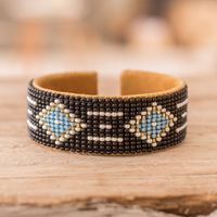 Black and Blue Glass Beaded Cuff Bracelet with Leather 'Altar Diamonds' Item ID: 2669933240