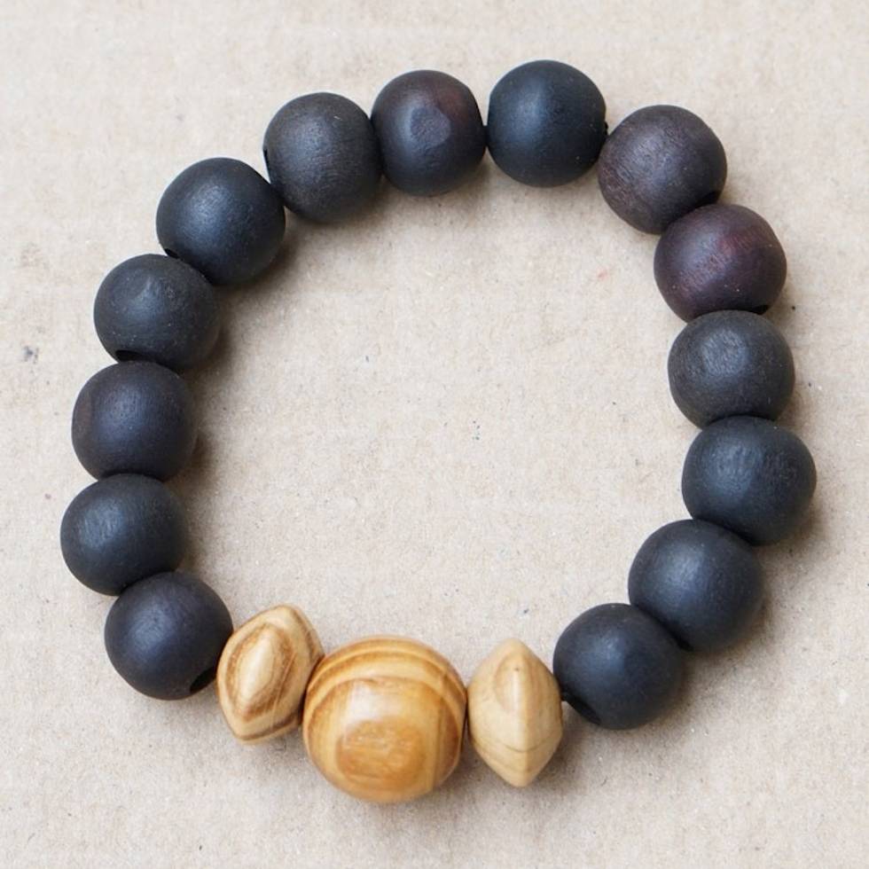 Black and Brown Sese Wood Beaded Stretch Bracelet from Ghana 'Forest Contrast' Item ID: 2671804997