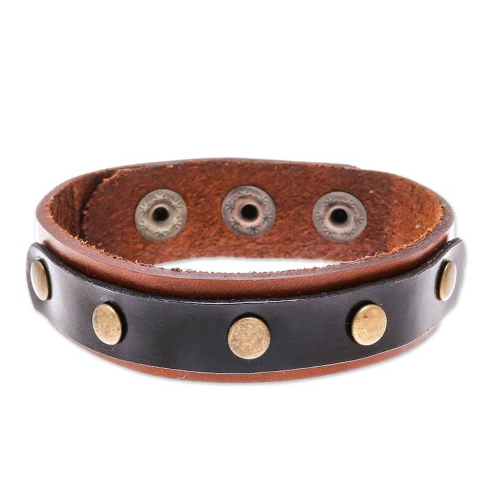Black and Brown Studded Leather Wristband Bracelet 'Striking Studs' Item ID: 2671798664
