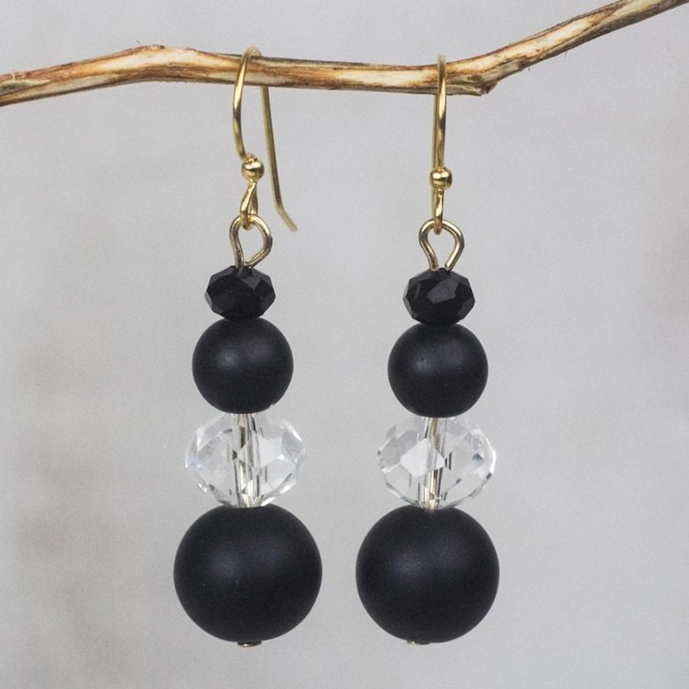 Black and Clear Recycled Glass and Plastic Dangle Earrings 'Sudden Clarity' Item ID: 2671805647
