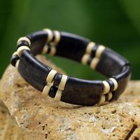 Black and Cream Eco Friendly Recycled Bead and Wood Bracelet 'Midnight Connection' Item ID: 2671803547