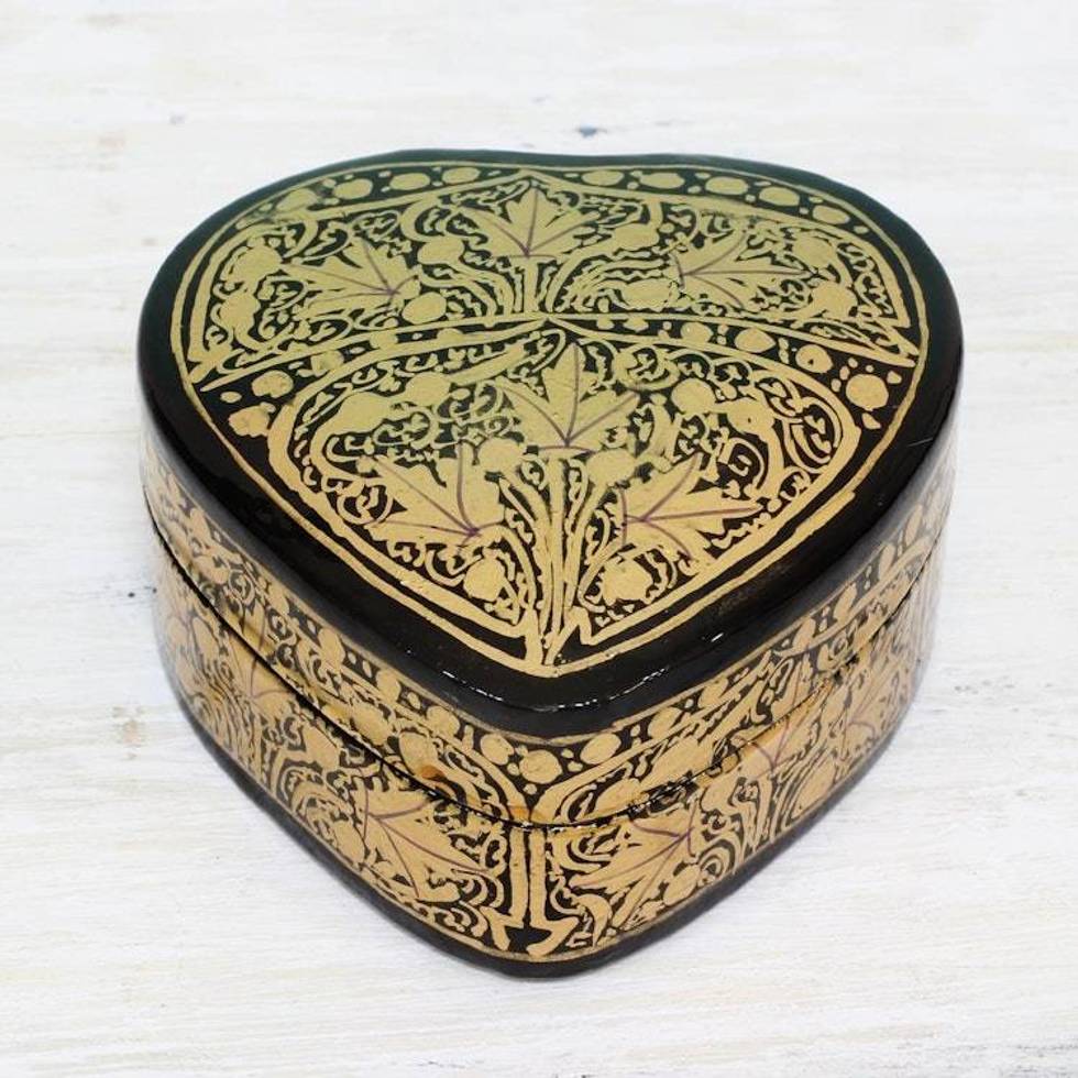 Black and Gold Papier Mache Decorative Box from India 'Royal Grandeur' Item ID: 2676663837