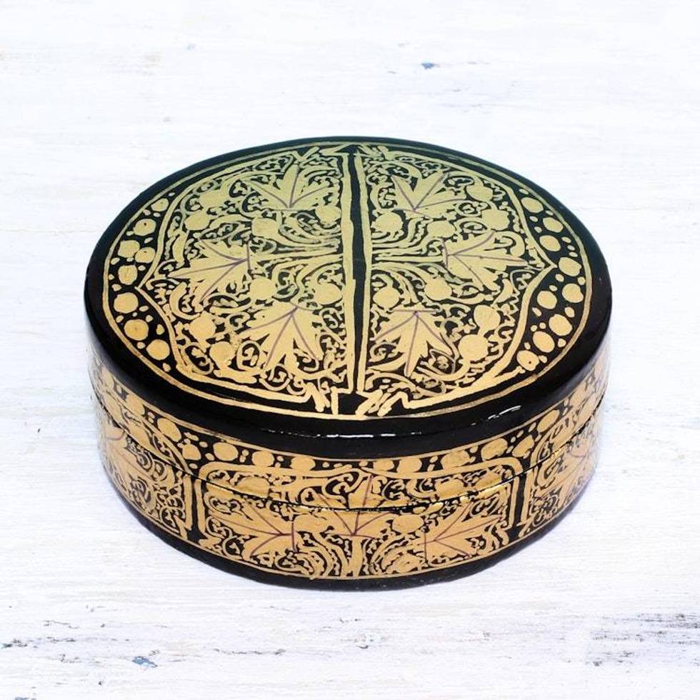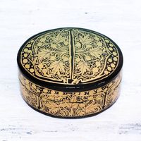 Black and Gold Papier Mache Decorative Box from India 'Serene Grandeur' Item ID: 2676663828
