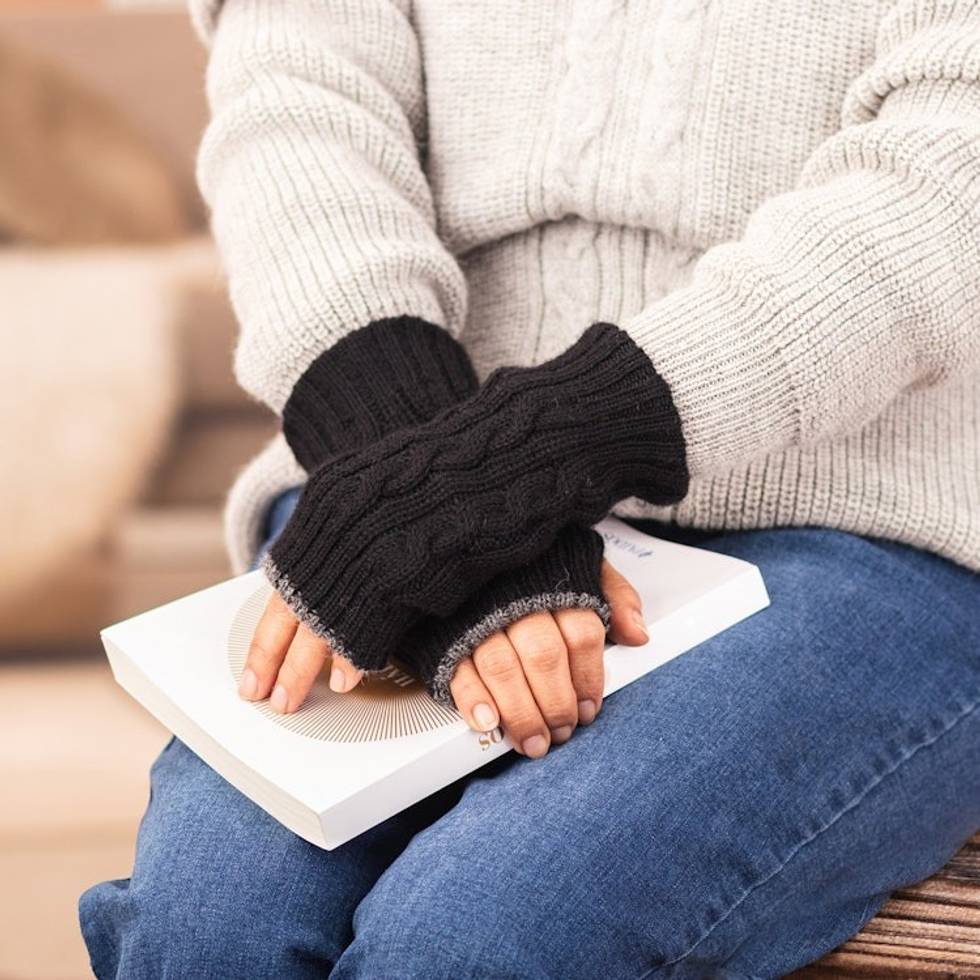 Black and Grey 100 Alpaca Reversible Fingerless Mittens 'Smoke and Black Glam' Item ID: 2671400232