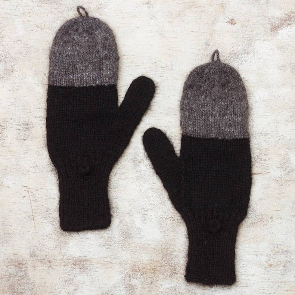 Black and Grey Convertible 100 Alpaca Mittens 'Winter Mornings' Item ID: 2669891498