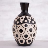 Black and Ivory Chulucanas Ceramic Decorative Vase from Peru 'Desert Stair' Item ID: 2671399457