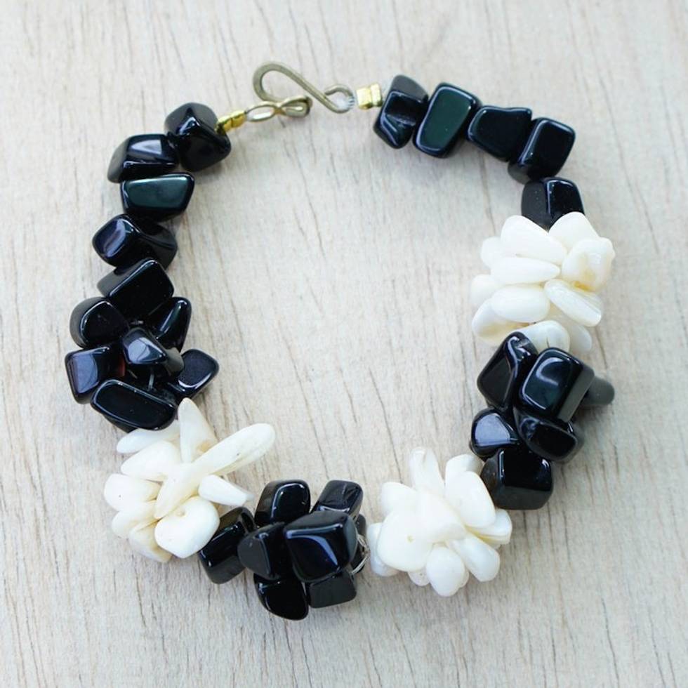 Black and Off-White Agate Beaded Bracelet Handmade in Ghana 'Magical Monochrome' Item ID: 2671801153