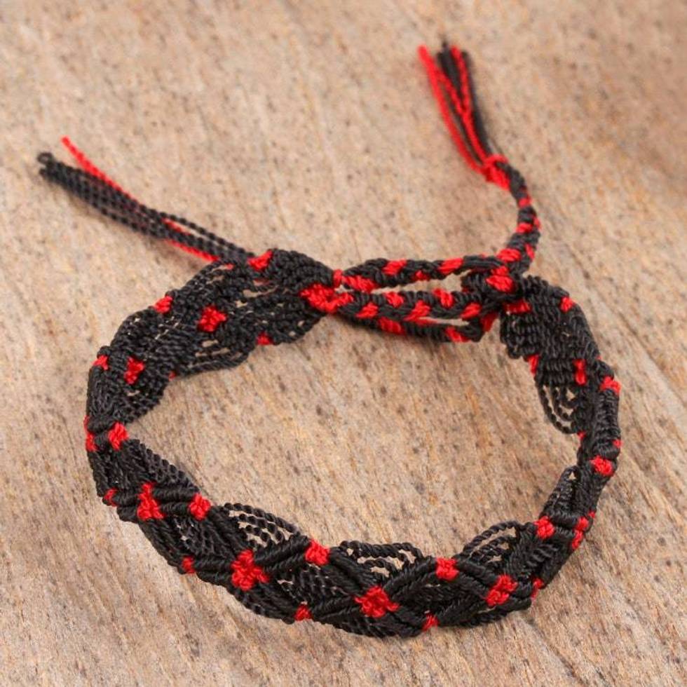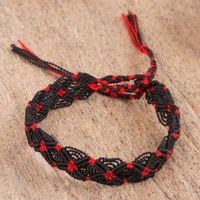 Black and Red Braided Cotton Bracelet from Mexico 'Scarlet Braid' Item ID: 2676646747