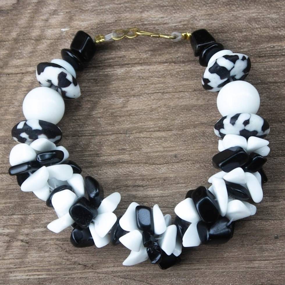 Black and White Agate Recycled Glass Bead Bracelet 'Dzidzor' Item ID: 2671806284